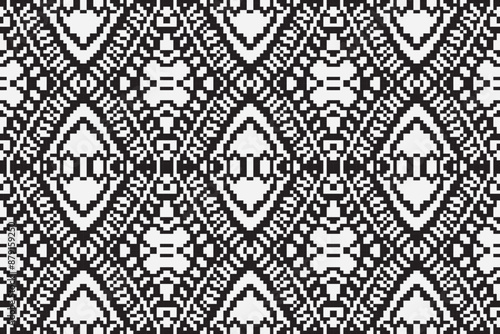 Fototapeta premium Ethnic seamless monochrome pattern vector image, Monochrome pixel background....