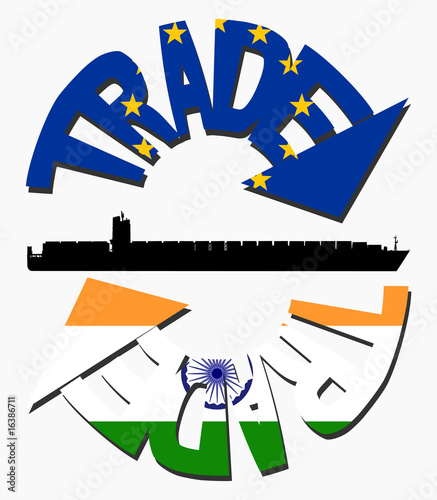 Obraz premium EU and Indian trade with flags and container ship