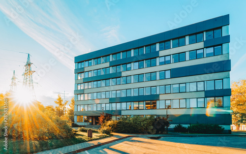 © Roman Babakin, Obraz premium EU Corporate business office and street on background sun light