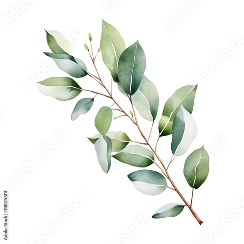 Fototapeta premium Eucalyptus branch watercolor painting representing australia day festivities