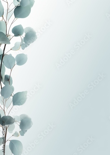 Naklejka premium Eucalyptus branches on light minimalistic background, wallpaper. Generative...