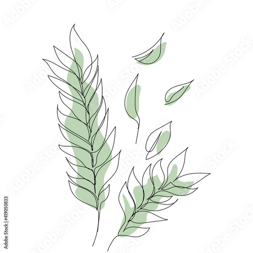 Fototapeta premium Eucalyptus leaves . Line Drawing Palm Leaves. Minimalist