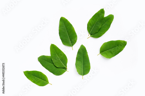 © Bowonpat, Fototapeta premium Eucalyptus leaves on white background.