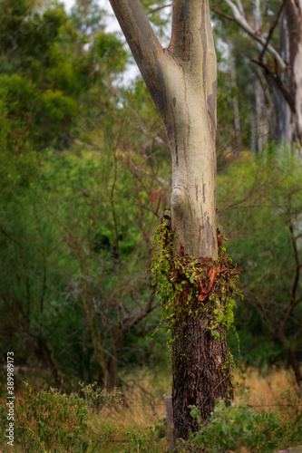 © Robert, Obraz premium Eucalyptus tree trunk with vine growing on it