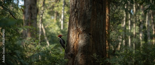 © TheWaterMeloonProjec, Fototapeta premium Eucalyptus tree with a Red-billed woodpecker