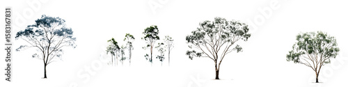 © R Studio, Obraz premium Eucalyptus Trees Silhouettes on White Background