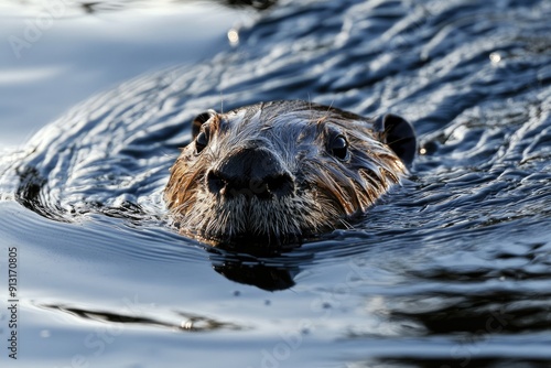 Fototapeta premium Eurasian beaver swimming in a lake