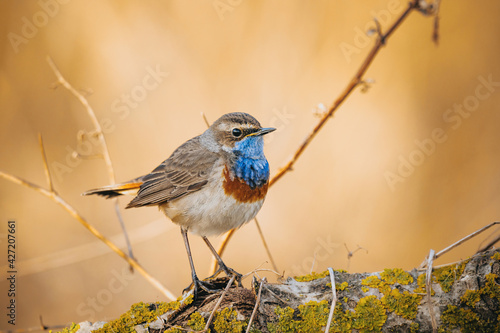 © jakubstepan, Fototapeta premium Eurasian blue throat bird in wild nature