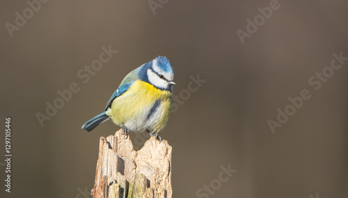 © Simonas, Fototapeta premium Eurasian Blue Tit - at a wet forest in early spring