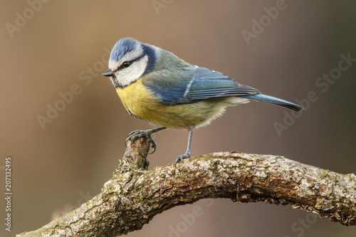 © Brais Seara, Obraz premium Eurasian Blue Tit (Cyanistes caeruleus), perched on a branch, Castile and Leon, Spain.