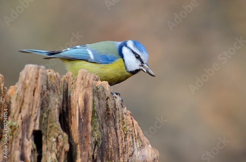 Fototapeta premium Eurasian blue tit (Cyanistes caeruleus) with seed