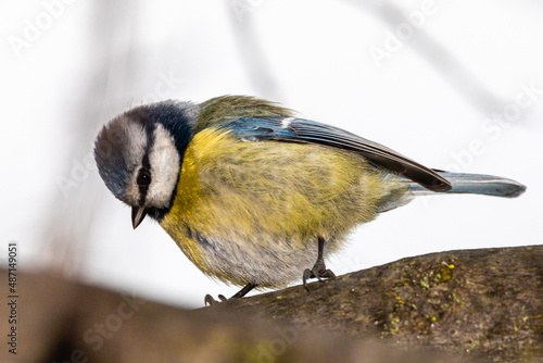 Fototapeta premium Eurasian Blue Tit perched on a tree branch