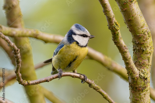 © tan4ikk, Fototapeta premium Eurasian Blue Tit Sitting On Tree With Blurred Background