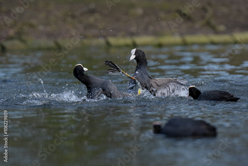 Fototapeta premium Eurasian Coot, Coot, Fulica atra - spring flight.