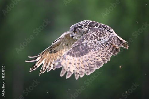 Fototapeta premium Eurasian eagle-owl flying in the forest