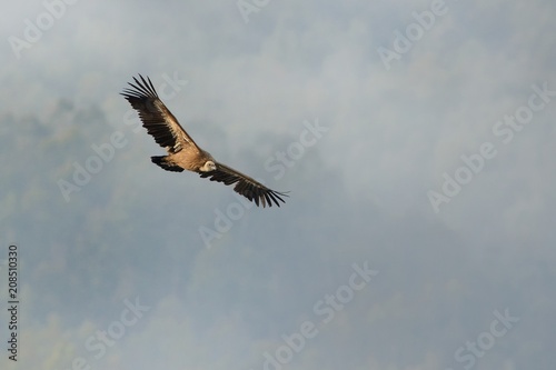 Obraz premium Eurasian Griffon (Gyps fulvus) captured in flight. Vulture flying above the...