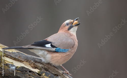 © Simonas, Fototapeta premium Eurasian Jay - in winter at the wet forest