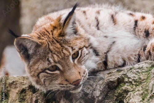 Fototapeta premium Eurasian lynx (lynx lynx) resting and looking down