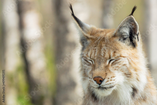 © Jon Anders Wiken, Fototapeta premium Eurasian lynx lynx portrait outdoors in the wilderness. Endangered species and animal photography concept.