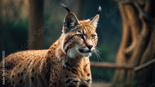 © AIArtistry, Fototapeta premium Eurasian lynx portrait in an enclosure with a blurred backdrop