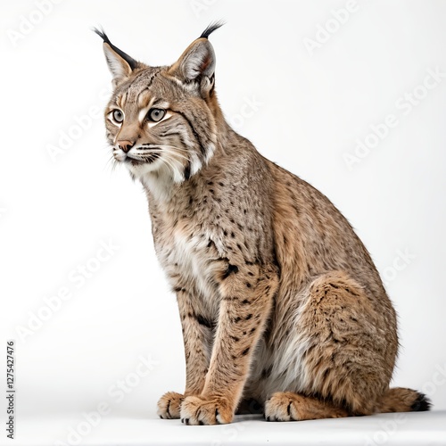 © ลลิดา ไชยศรีษะ, Obraz premium Eurasian Lynx Sitting on White Background