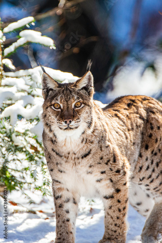 © wayne, Obraz premium Eurasian Lynx walks around in the forests of Europe