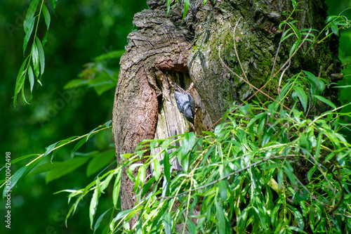© Andrey, Obraz premium eurasian nuthatch on a tree trunk