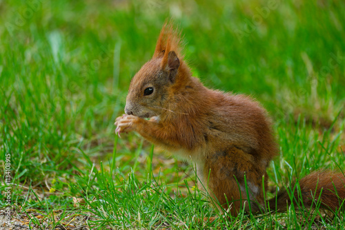 Fototapeta premium Eurasisches Eichhörnchen, Eichhörnchen, Eichkater, Sciurus vulgaris