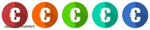 Obraz premium Euro icon set, red, blue, green and orange flat design web buttons isolated on white background, vector illustration