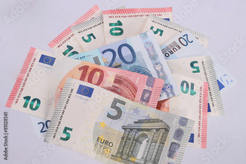 © J and S Photography, Obraz premium Euro notes on a plain white background.