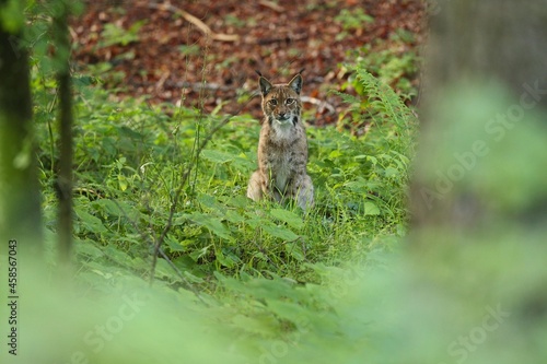 Obraz premium Euroasian lynx in the bavarian national park in eastern germany, european...