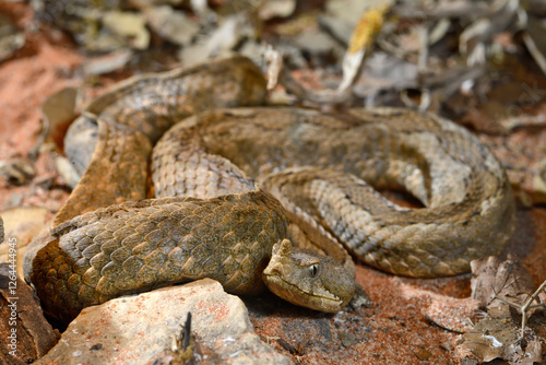 © bennytrapp, Fototapeta premium Europäische Hornotter - Weibchen // nose-horned viper - female (Vipera ammodytes meridionalis) - Kykladeninsel Tinos, Griechenland