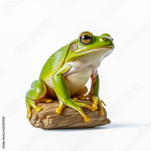 © pwmotion, Fototapeta premium Europäischer grüner Laubfrosch ( Hyla arborea), weißer Hintergrund, Generative AI