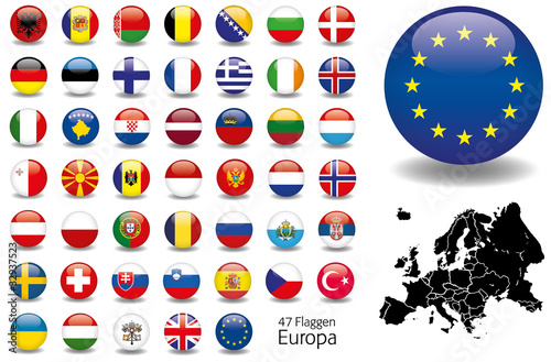 Fototapeta premium Europa Flaggen Fahnen Set Buttons Icons Sprachen 6