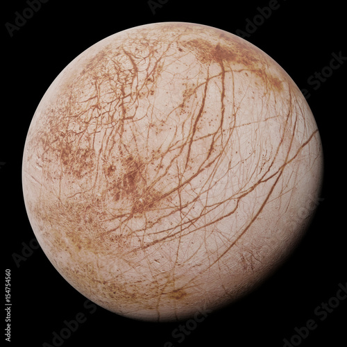 Fototapeta premium Europa, moon of the planet Jupiter in natural colours, isolated on black background