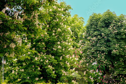Obraz premium Europe chestnut tree, Aesculus hippocastanum, in full blossom. Austria