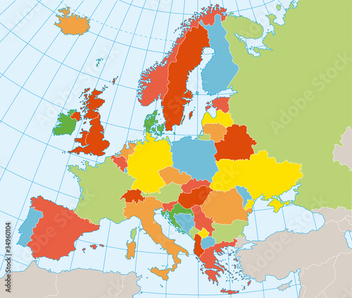 © peteri, Obraz premium Europe political map with all states, actual version.