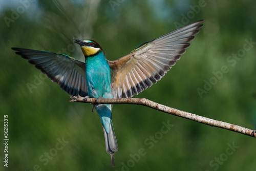 © Aleksei Zakharov, Obraz premium European Bee-eater comes in to land on a branch with another bee-eater