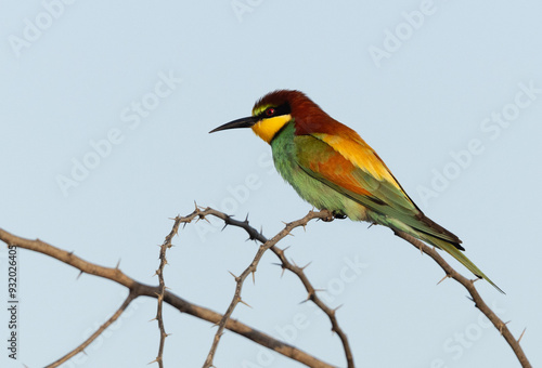Fototapeta premium European bee-eater perched on acacia tree, Bahrain
