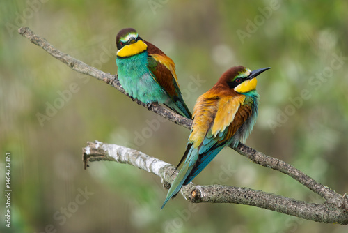 Fototapeta premium European Bee-eaters perched on a branch
