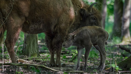 Fototapeta premium European Bison - Wisent with calf