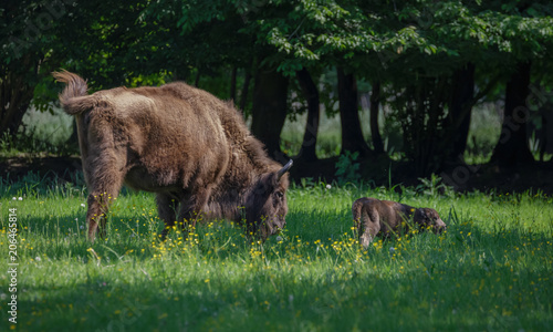 © Randy van Domselaar, Fototapeta premium European Bison - Wisent with calf
