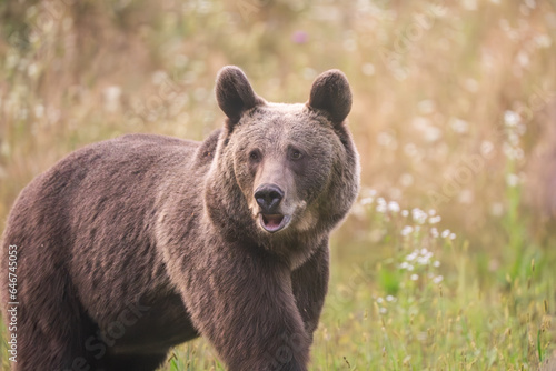 Fototapeta premium European Brown Bear (Ursula arctic) walking through the forest of Romania
