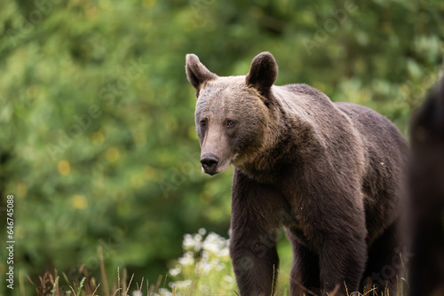 Fototapeta premium European Brown Bear (Ursula arctic) walking through the forest of Romania