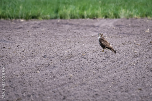Fototapeta premium European buzzard sitting in a field