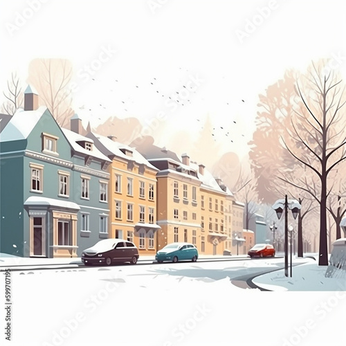 Obraz premium European city street illustration in winter