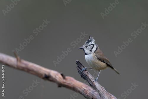 © denis, Obraz premium European crested tit Lophophanes cristatus in close view perched