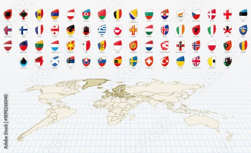 © boldg, Obraz premium European Flags in Rugby Style. Big Rugby icon set.