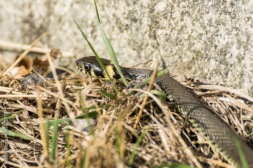 © ConnySkogberg, Fototapeta premium European grass snake sun bathing in springtime