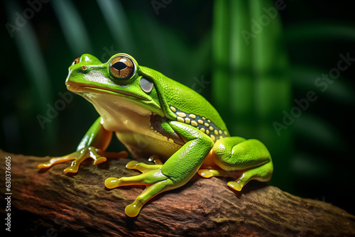 © tiero, Naklejka premium European green frog on branch.